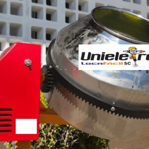 Com o mesmo sistema de funcionamento de betoneira para construção civil, porém com tambor em inox polido, e, capacidade de 15 litros.